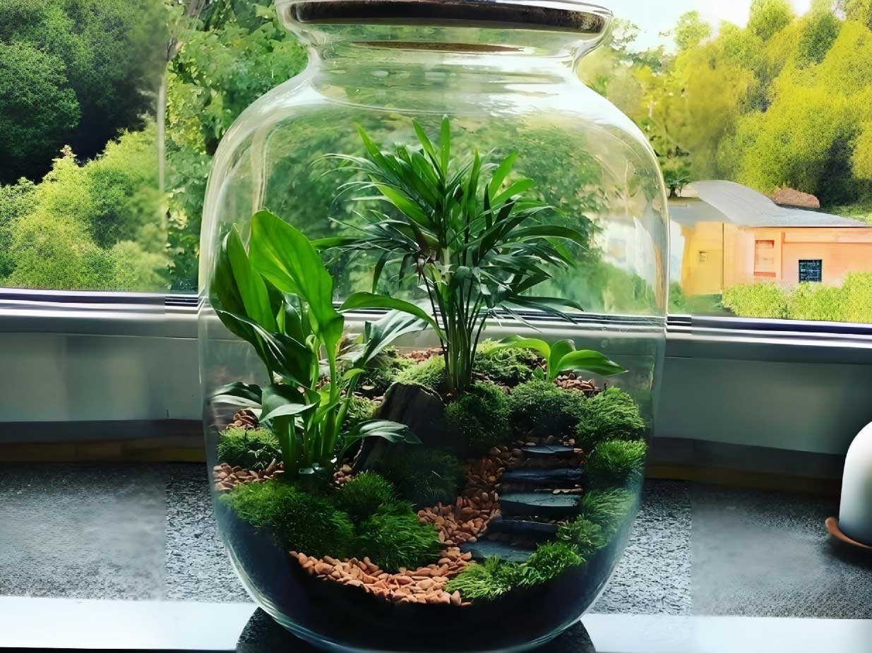 Ekosistem mini dalam wadah yang memberikan keindahan alami
